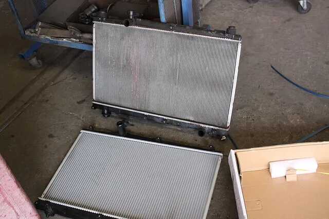 トラブルの原因となった古い部品はしっかり確認し、新しいラジエーターへ交換。